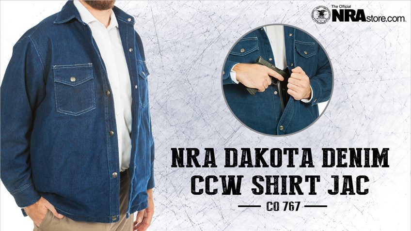 Available exclusively at NRAstore.com, this shirt jacket is built with beefy American denim and a 100% flannel lining, providing an extra layer of warmth when the thermometer drops. Taffeta-lined sleeves help block the wind and make the on and off a cinch. An internal magazine/utility pocket offers extra storage for a flashlight, pepper spray or another magazine!