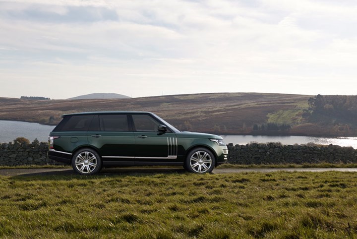 “The unique Holland & Holland Green of the full bodywork mirrors and bonnet vent, the grille is painted in the same deep green and has chrome highlights. Holland & Holland badging can be found on the lower accent door badges of both long and standard wheelbase versions, as well as on the tailgate”
