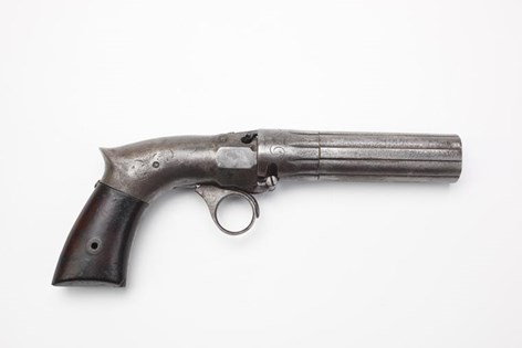 Robbins and Lawrence Armory produced a variety of pepperbox pistols that were extremely popular from 1851 to 1854. The armory was famously known for being one of the firsts to manufacture interchangeable guns and was located in Windsor, Vermont!