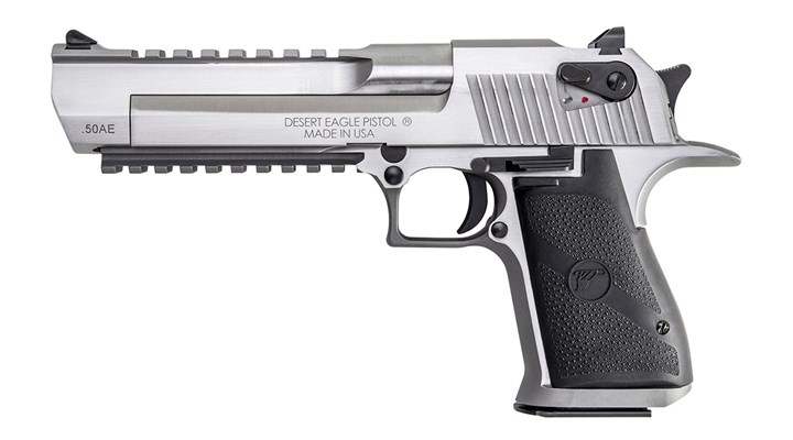 The famous Desert Eagle is renowned for chambering the largest centerfire pistol cartridge of any magazine-fed autoloading pistol, firing the giant .50 Action Express round. Designed in conjunction by Magnum Research and Israeli Military Industries, this massive semi-automatic gun tips the scales at 4.4 lbs. unloaded. Variants of the Desert Eagle have been designed to fire smaller calibers, such as the .44 Magnum and .440 Cor-bon rounds, and smaller versions, the Baby Eagle and Micro Eagle, were also released. Movie buffs may recognize the sizeable semi-auto as the choice sidearm of Marvel Comics character Deadpool, who carried two .50 AE Desert Eagles in the titular 2016 film.