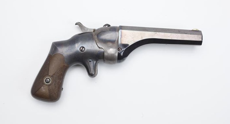 While the Sharps single-shot “buffalo” rifles were well-known across the West, the smaller Sharps & Hankins derringers, made in Philadelphia, received lesser brand recognition. Christian Sharps, the inventor of the breechloading percussion single-shot sold in the thousands during the American Civil War in carbine and rifle format, had early on left the Connecticut company that bore his name and headed south. In Philadelphia, Sharps began marketing a line of metallic cartridge four-shot derringers in .22, .30, and .32 rimfire chambering.